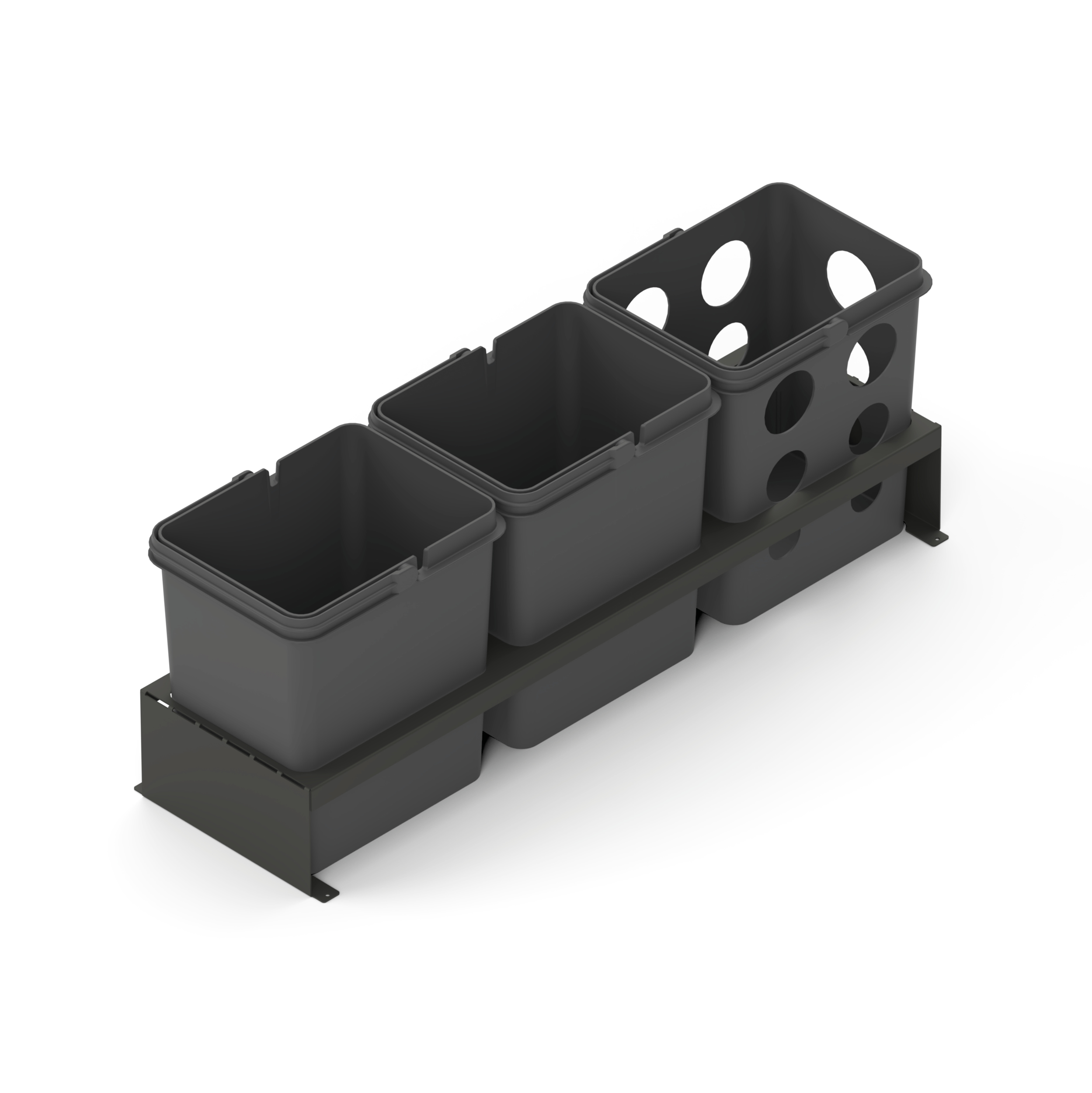Waste sorting system Merida is designed to be mounted in your drawer. This system is made for 80, 60 and 40 cm wide drawers and fits all types of drawers, both straight and curved. Merida is available in two different depths; 35 and 45 cm. Made in Sweden; frame in sheet metal and buckets in recycled PP plastic.